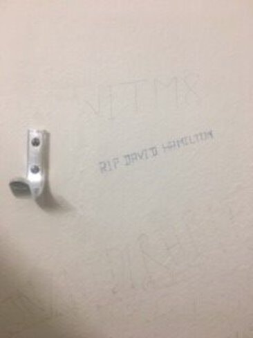 Wieso schreibt jemand RIP DAVID HAMILTON auf eine Toilettenwand?